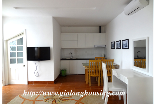 Căn hộ cho thuê gần công viên nước Hồ Tây. Tổng diện tích là 40 mét vuông. Nó được trang bị đầy đủ nội thất chất lượng cao. Giá thuê được bao gồm nước, internet, truyền hình cáp, an ninh, chỗ để xe máy