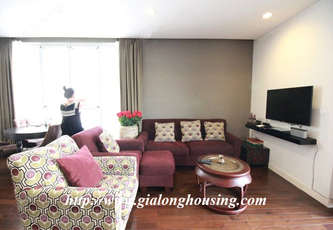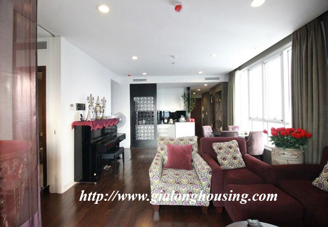 Cho thuê căn hộ cao cấp ở tòa Lancaster, 20 Núi Trúc, Ba Đình. Diện tích căn hộ: 118 m2, thiết kế 2 phòng ngủ, 2 phòng vệ sinh.
