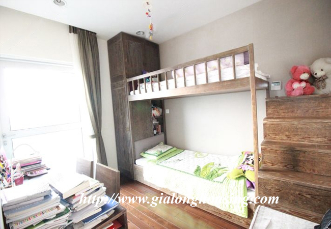 Phòng ngủ phụ được thiết kế dành riêng cho trẻ nhỏ với bàn học và dụng cụ học tập.