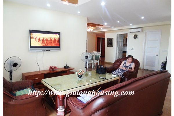 Một căn hộ có diện tích lớn cho thuê tòa nhà E5, khu vực Ciputra, Hà Nội, 153 mét vuông, một phòng khách, một phòng ăn, nhà bếp được trang bị tốt, căn hộ có 04 phòng ngủ và 02 phòng tắm, cộng với một phòng lưu trữ và một phòng giặt ủi. Căn hộ rộng, nhiều ánh sáng, thoáng mát, trên tầng cao, yên tĩnh và tươi sáng; đây là một ngôi nhà rất phù hợp cho gia đình có trẻ em.