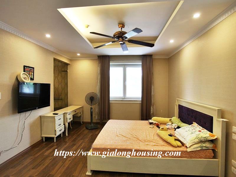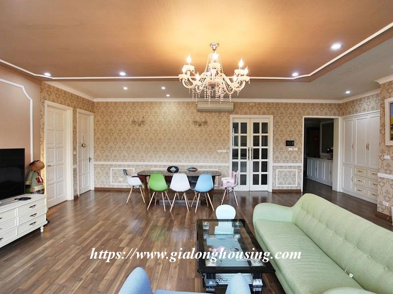 Căn hộ đẹp này nằm ở tầng thấp của tòa nhà Ciputra. Toàn bộ căn hộ đầy ánh sáng tự nhiên và không khí trong lành do thiết kế phía tây. Tổng diện tích 126m2 gồm 03 phòng ngủ và 02 phòng tắm. Nội thất đầy đủ và trang thiết bị đều mới mẻ và tiện nghi cho người thuê nhà ở lâu dài. Những người thuê nhà có thể thưởng thức hồ bơi, sân gôn, phòng tập thể dục và trường học quốc tế.