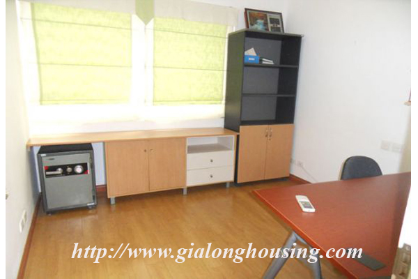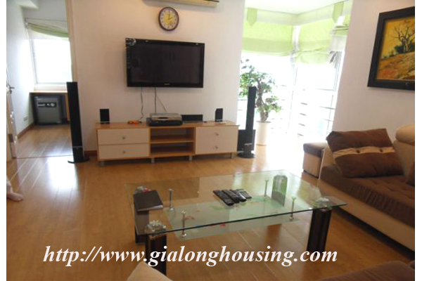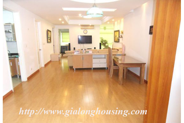 Căn hộ đầy đủ nội thất cho thuê tại Ciputra Hà Nội với diện tích sử dụng là 123 m vuông, bao gồm 3 phòng ngủ, 2 phòng tắm, phòng khách với bộ ghế sofa thoải mái, nhà bếp hiện đại và khu vực phòng ăn. Căn hộ mới, màu sắc trang nhã, không gian sống tươi sáng với sàn gỗ. Nó có ban công lớn với tầm nhìn đẹp. Nội thất được trang bị đầy đủ