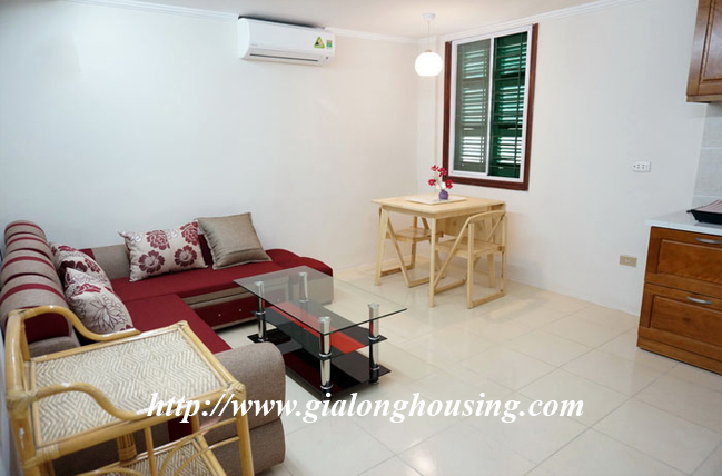 Cho thuê căn hộ dịch vụ với nội thất được trang bị đầy đủ, mới, tiện nghi hiện đại trên phố Hoàng Cầu, rất gần với hồ Hoàng Cầu. Căn hộ có diện tích: 50 m2, thiết kế 1 phòng ngủ, phòng khách, bếp, 1 phòng vệ sinh. Căn hộ rất được thiết kế rất thoáng đãng, nội thất đẹp, phù hợp cho một đôi vợ chồng, khách độc thân hoặc khách người nước ngoài thuê để ở.