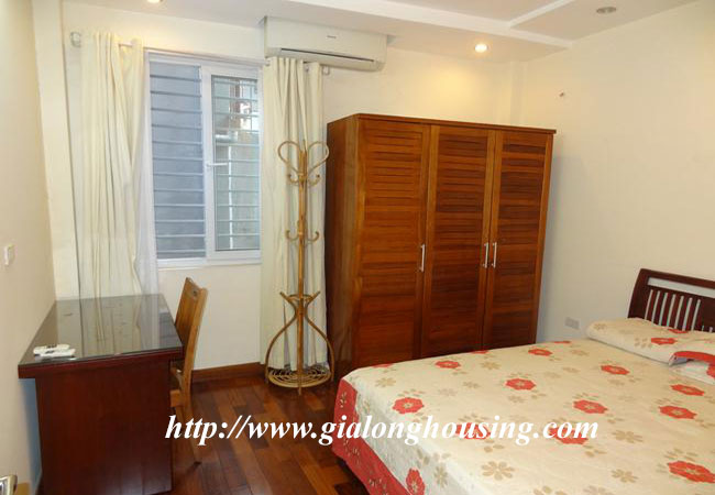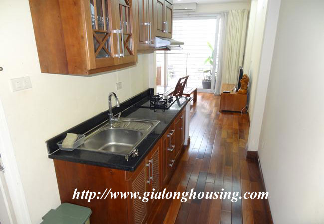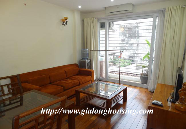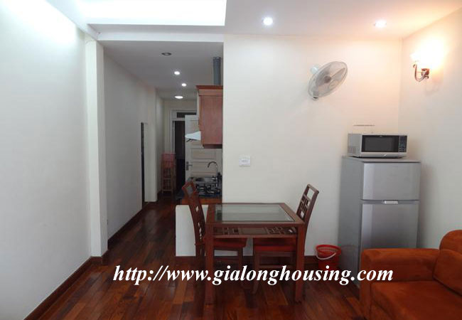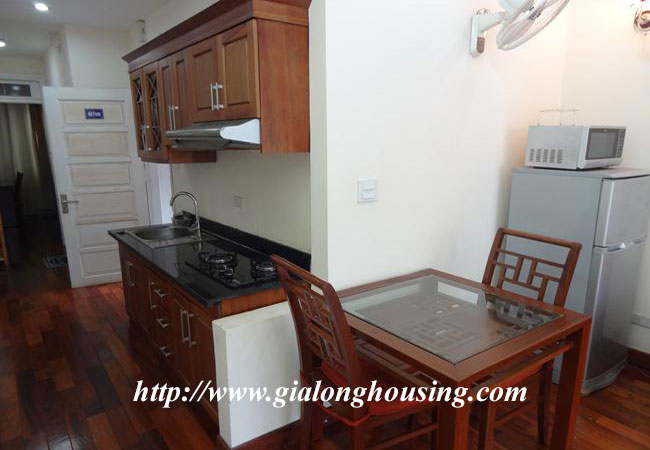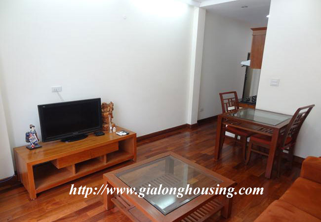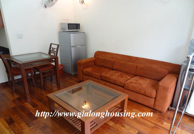 Cho thuê căn hộ dịch vụ trên phố Kim Mã, gần khách sạn Daewoo, công viên Thủ Lệ và hồ Ngọc Khánh. Diện tích căn hộ: 50 m2, thiết kế 1 phòng ngủ, 1 phòng vệ sinh có bồn tắm. Phòng khách thoáng, ban công rộng, bếp hiện đại. Nội thất đầy đủ, sàn gỗ, căn hộ nằm trong khu vực yên tĩnh, an ninh tốt. Giá thuê đã bao gồm: internet, truyền hình cap, nước sinh hoạt, dọn vệ sinh 3 lần/ tuần.