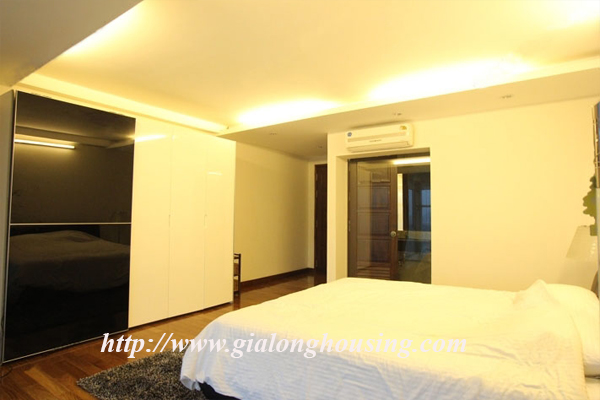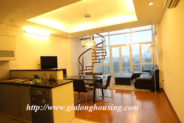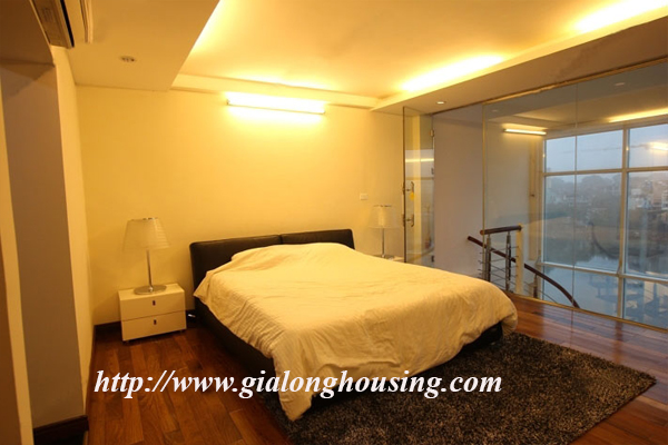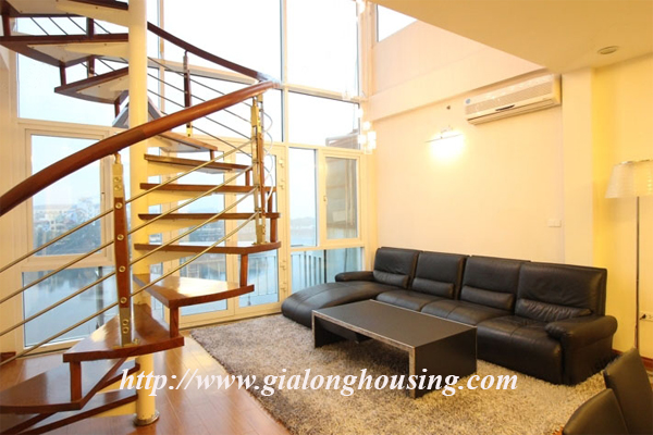 Cho thuê căn hộ ở penthouse ở phố Trấn Vũ mặt hồ Trúc Bạch, diện tích 80m2 tâng x 2 tầng, tổng diện tích 160m2, 2 phòng ngủ, 2 phòng tắm, căn hộ rất hiện đại, nội thất theo tiêu chuẩn của châu Âu, view nhìn ra hồ Trúc Bạch, khu vực dân trí cao, yên tĩnh, an ninh tốt, có bảo vệ 24/24, giao thông thuận tiện, miễn phí internet, truyền hình cáp, nước.