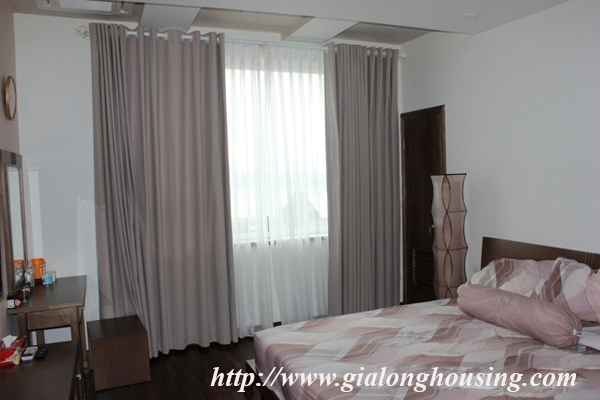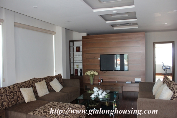 Căn hộ đẹp cho thuê đường Quảng Khánh, quận Tây Hồ. Nó ở vị trí thuận tiện giao thông đi lại và sinh hoạt với nhiều nhà hàng, quán cà phê, cửa hàng tạp hóa và siêu thị gần đó. Căn hộ này trên tầng cao nhất của tòa nhà hiện đại với tầm nhìn bao quát Hồ Tây. Với tổng diện tích sinh hoạt là 200 mét vuông, được thiết kế 3 phòng ngủ, 3 phòng tắm, một phòng khách rộng rãi , phòng bếp mở theo phong cách châu Âu bên cạnh ban công xinh đẹp, nơi bạn có thể nhìn toàn cảnh của hồ Tây. Căn hộ rộng rãi được trang bị đầy đủ tiện nghi và dịch vụ đầy đủ.