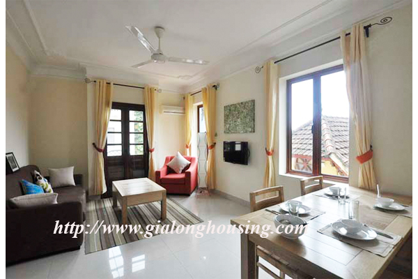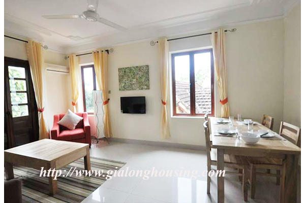 Tọa lạc tại đường Tô Ngọc Vân, căn hộ này gần Hồ Tây, nhà hàng, quán cà phê, thị trường nhỏ, công viên. Tổng diện tích là 95 mét vuông với 02 phòng ngủ và 01 phòng tắm. Có một ban công nhỏ để thư giãn. Nó được trang bị đầy đủ và có một số dịch vụ bao gồm.