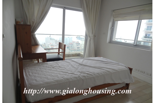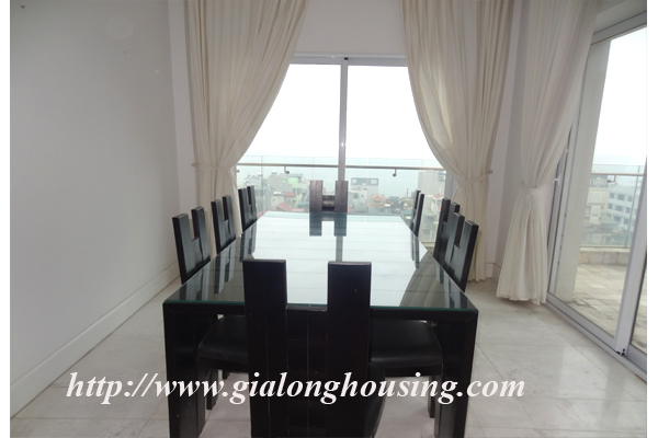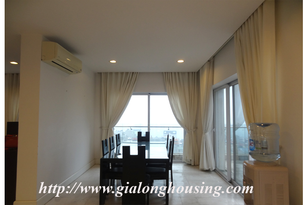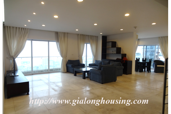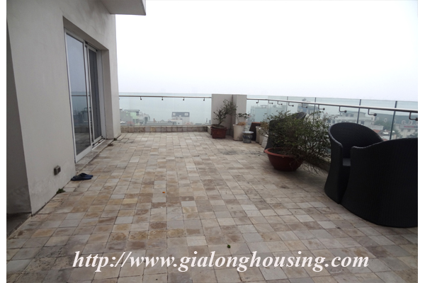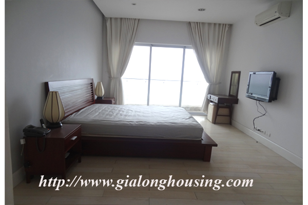 Căn hộ với tầm nhìn thẳng ra hồ Tây, tầng cao, , diện tích 250 met vuông, khu vực sảnh lớn nhìn ra hồ, sân rộng, phòng khách và phòng sinh hoạt chung, 03 phòng ngủ, 03 phòng tắm. Từ tất cả các phòng, bạn đều có tầm nhìn đẹp với cửa sổ kính lớn, có lưới chống muỗi, rèm che và tủ quần áo tiện nghi.