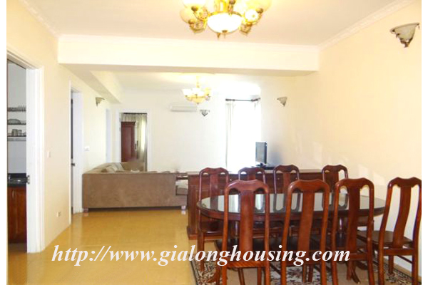 Cho thuê căn hộ đẹp trong tòa nhà E5 Ciputra Hà Nội. Diện tích sử dụng là 123 m vuông, được thiết kế với 3 phòng ngủ, 2 phòng tắm, phòng khách và nhà bếp. Có ban công lớn với tầm nhìn đẹp cho khu vực Ciputra. Sàn gỗ tự nhiên. Đầy đủ nội thất và trang thiết bị.