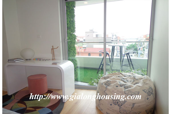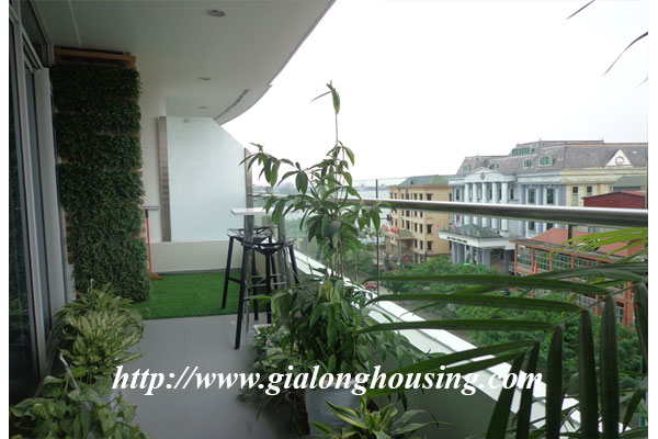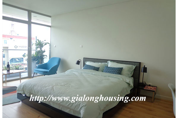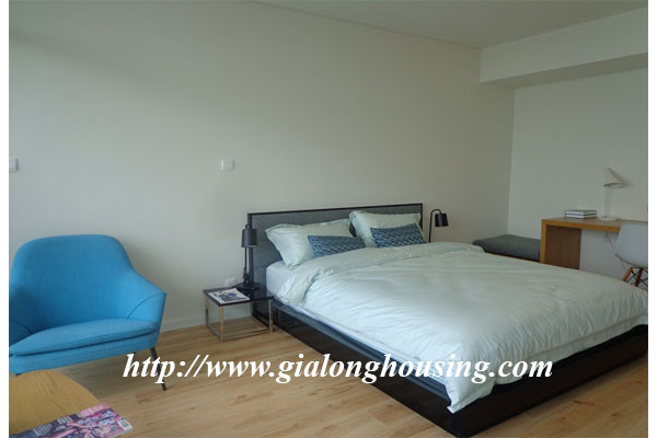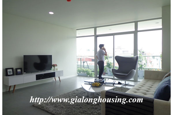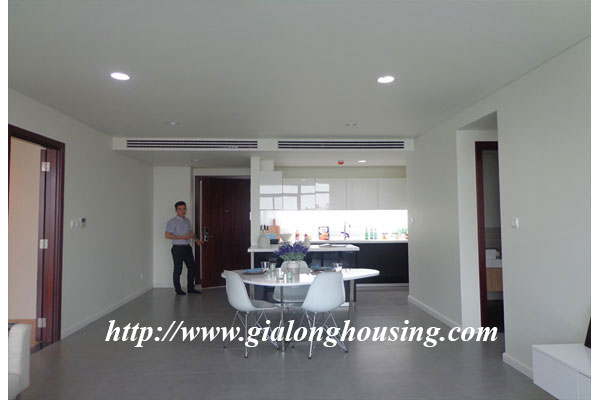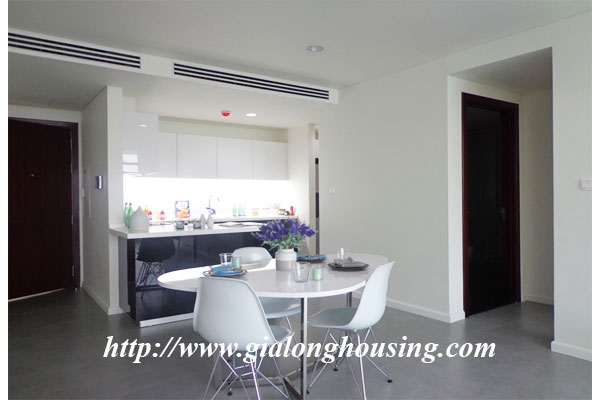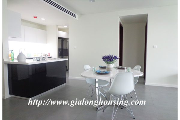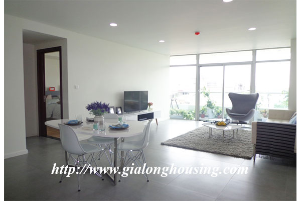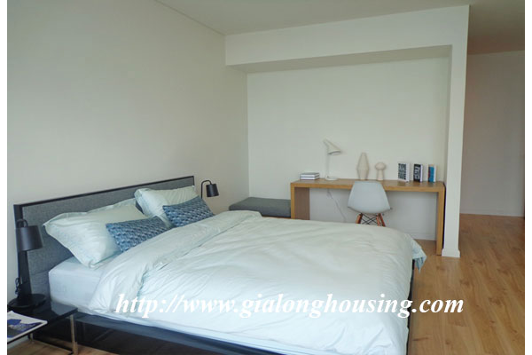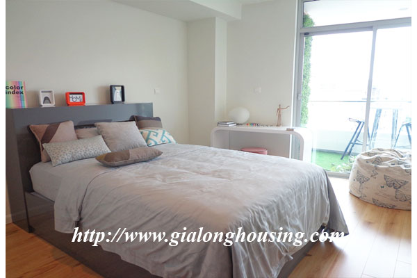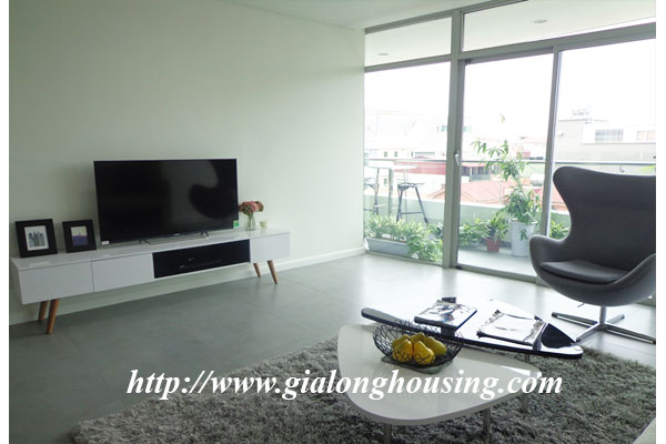 Diện tích căn hộ là 120m2, gồm 03 phòng ngủ, 02 phòng tắm, 01 phòng khách và ban công view hồ Tây. Căn hộ được trang trí nội thất mới mẻ theo phong cách hiện đại châu âu, mang đén cảm giác quý phái cao sang cho khách ở tại căn hộ này. Căn hộ nằm ở vị trí đắc địa của khu vực Tây hồ khi là nơi giao điểm của tnh hoa như : Hồ Tây, cầu Nhật Tân, khu đô thị Ciputra...
