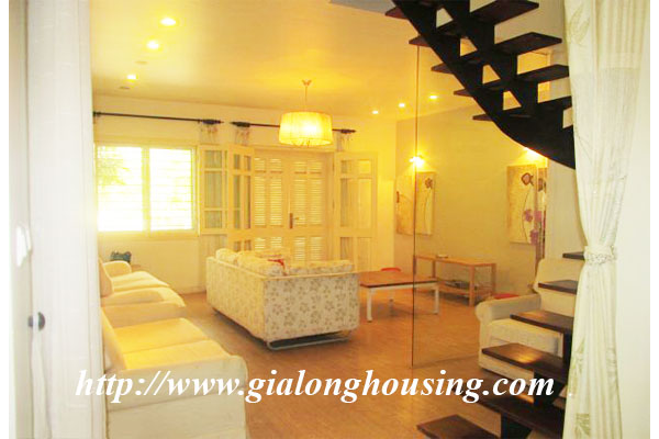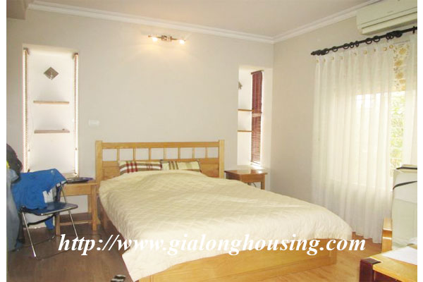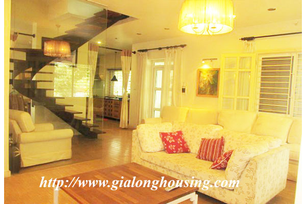 Đây là căn BT có diện tích nhỏ, nằm trong khu D5 BT Vườn Đào.Diện tích BT là 120m2, DTXD là 90m2 x 04 tầng, gồm 04 phòng ngủ, 04 phòng tắm, 01 phòng khách và 03 ban công.BT đã có đầy đủ đồ đạc và khách thuê không phải sắm thêm gì. BT nằm ở vị trí đẹp, tiện đi vào trung tâm TP, cầu Nhật Tân...