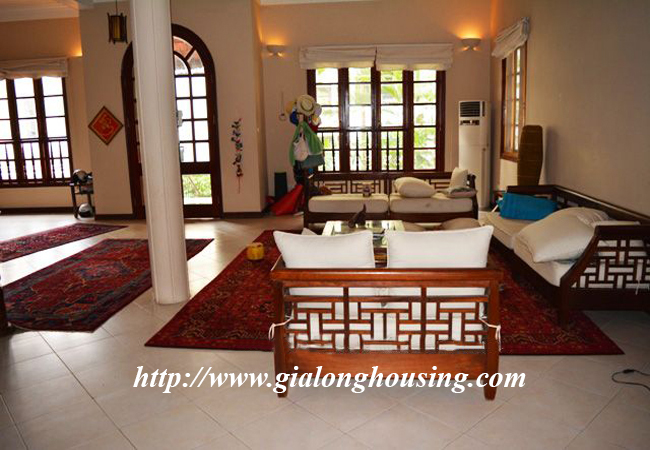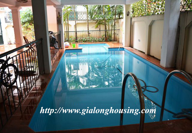Cho thuê căn Biệt Thự rộng lớn ở Phố Tô Ngọc Vân,Tây Hồ. Diện tích căn Biệt Thự là 360m2 đất, diện tích xây dựng là 120m2 x 4.5 tầng, gồm có 5 phòng ngủ, 5 phòng tắm, 01 phòng khách rộng rãi, bếp hiện đại và trang thiết bị đầy đủ. Tầng 01 căn nhà là bể bơi, sân vườn, và chỗ để xe rộng rãi. Nhà thích hợp làm văn phòng hoặc cho người nước ngoài thuê để ở...