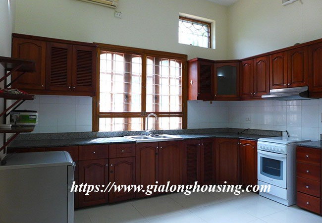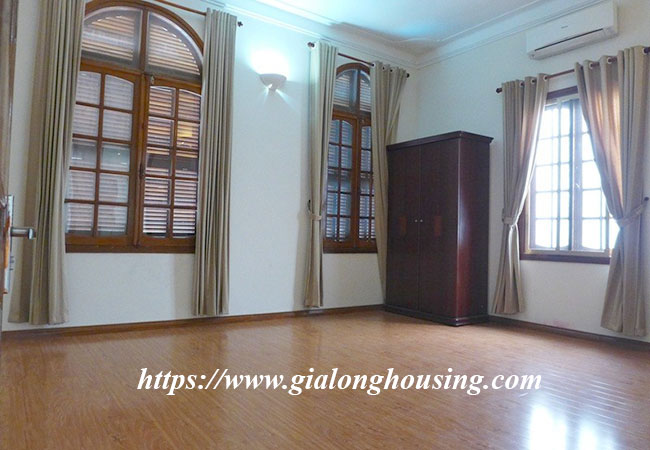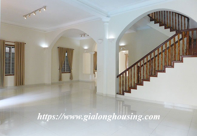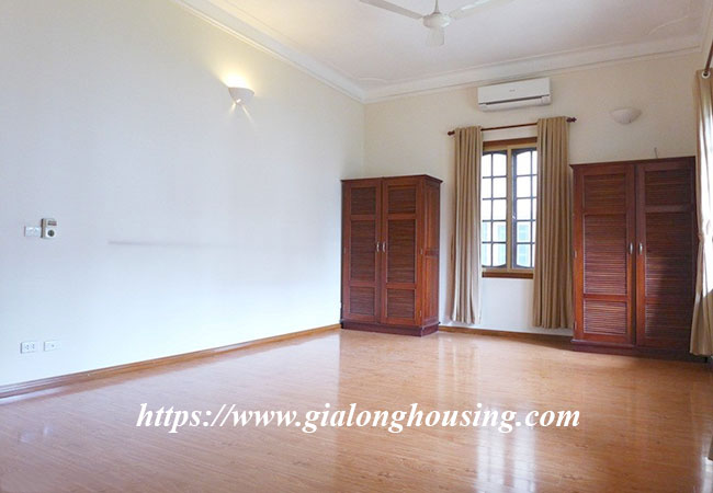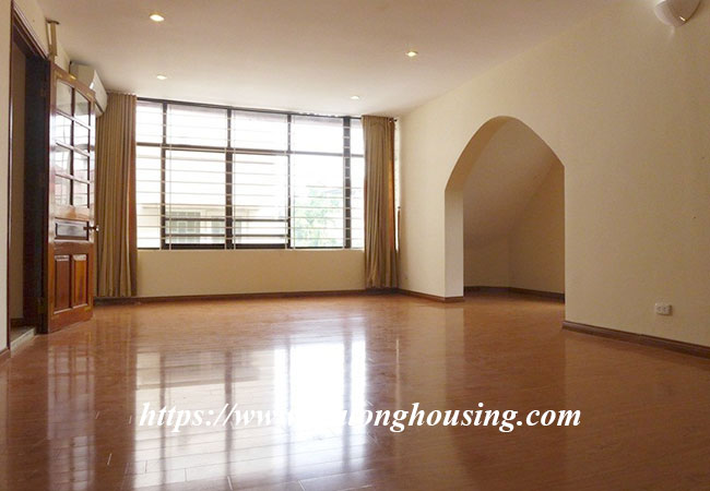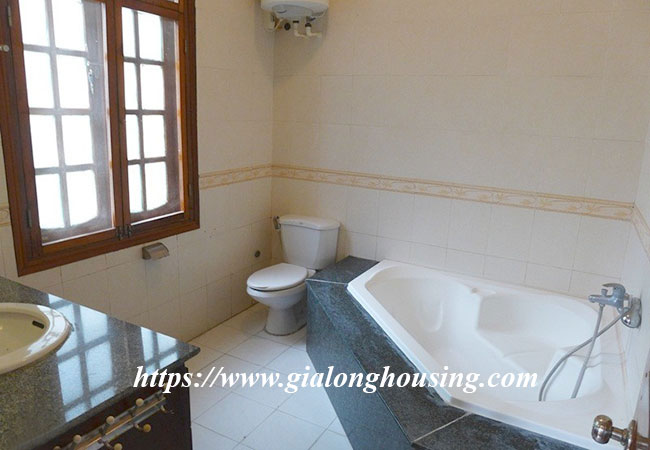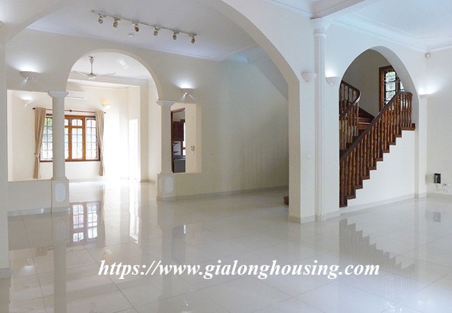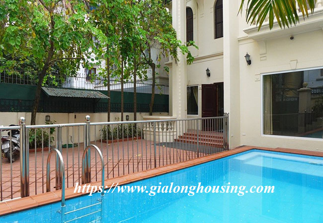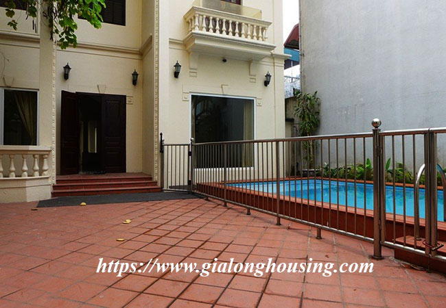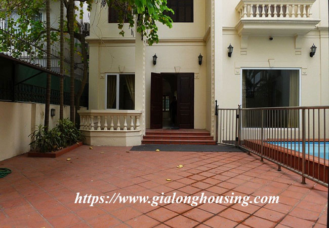 Cho thuê biệt thự rộng lớn ở phố Tô Ngọc Vân, Tây Hồ. Biệt thự có diện tích đất là 400m2, diện tích xây dựng là 200m2 x 3.5 tầng, gồm có 5 phòng ngủ, 6 phòng vệ sinh, phòng khách rất rộng, bếp hiện đại. Nhà thiết kế thoáng mát, có sân trước sau rộng rãi, có bể bơi mùa hè.Nhà rất gần hồ Tây, khách sạn, nhà hàng, quán cà phê, trường học và nhiều tiện ích khác.
