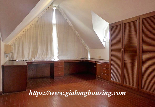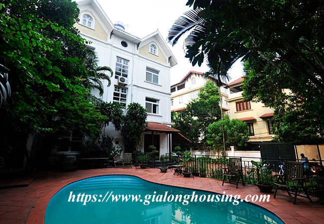 Cho thuê Biệt thự sân vườn bể bơi rộng lớn, ở Tô Ngọc Vân,Tây Hồ. Diện tích nhà là 300m2, diện tích xây dựng là 140m2 x 4.5 tầng, gồm có 05 phòng ngủ, 05 phòng tắm, 01 phòng khách rộng, phòng bếp hiện đại. Nhà đã có nội thất cơ bản, thích hợp với nhiều nhu cầu khách thuê cả để ở và làm văn phòng. Nhà cũng có thể thuê riêng nhà tách rời với bể bơi sân vườn với giá thương lượng. Nhà trong ngõ rộng, ô tô vào nhà thoải mái, yên tĩnh, an ninh tốt, gần các tiện ích như nhà hàng, công viên,siêu thị ...