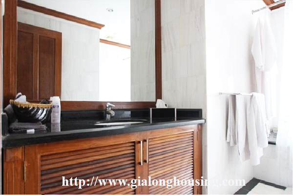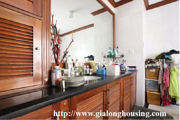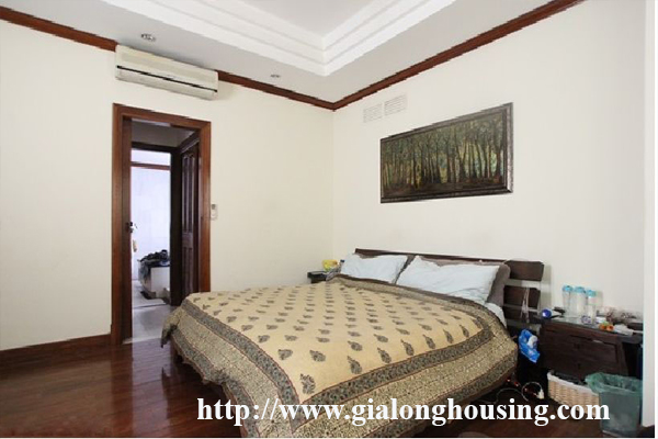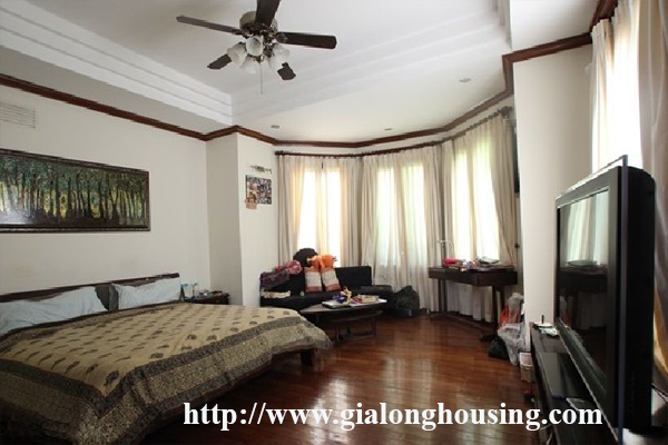 Biệt thự sân lớn ở phố Tô Ngọc Vân, quận Tây Hồ, Hà Nội cho thuê. Diện tích đất là 350 mét vuông, diện tích xây dựng là 120 mét vuông mx 3,5 tầng, thiết kế với 4 phòng ngủ, 4 phòng tắm với bồn tắm, phòng khách và nhà bếp hiện đại. Nó có ban công với tầm nhìn đẹp. Nó có một nhà để xe lớn, một sân trong. Giá thuê 4300 USD / tháng