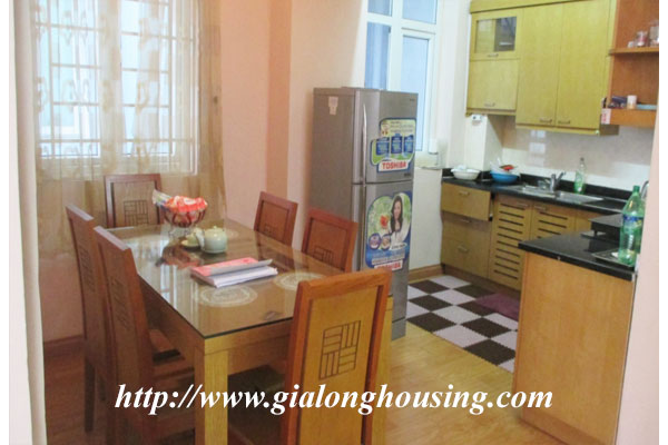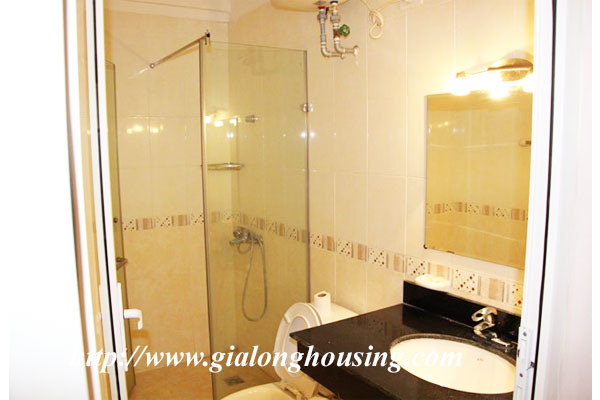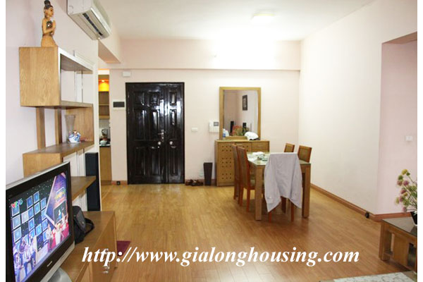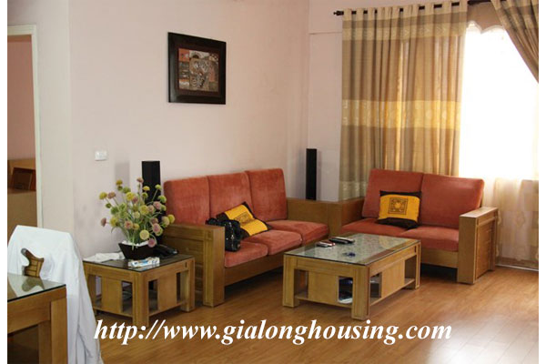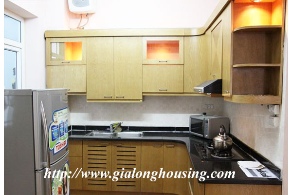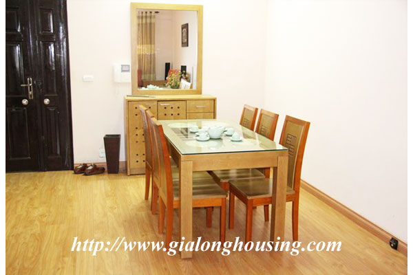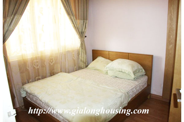 Cho thuê căn hộ chung cư 172 Ngọc Khánh. Diện tích: 135 m2, thiết kế 3 phòng ngủ, 2 phòng tắm. Căn hộ đã có đầy đủ nội thất, sàn gỗ, ban công nhìn ra hồ Giảng Võ. Căn hộ tiện cho khách người nước ngoài hoặc gia đình thuê để ở. Giá cho thuê: 850 $/ Tháng.
