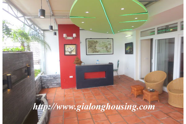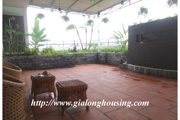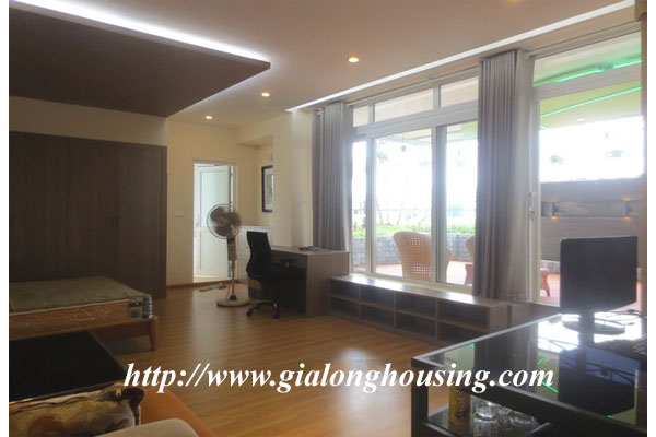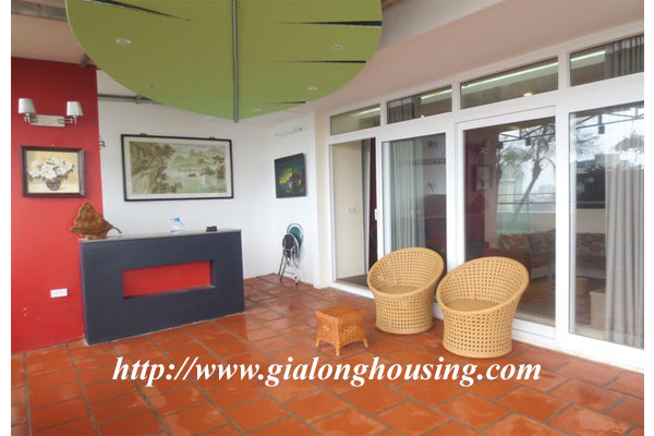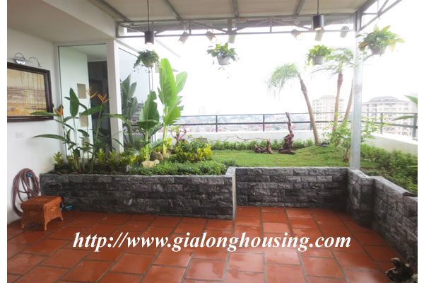 Cho thuê căn hộ ở tầng trên cùng của tòa nhà 130 Đốc Ngữ, gần bệnh viện 354, khách sạn Daewoo và TTTM Lotte. Căn hộ có tổng diện tích 80 m2, diện tích sinh hoạt 40 m2 với 1 phòng ngủ, 1 WC và 40 m2 sân vườn. Căn hộ đã có nội thất đầy đủ, thoáng đáng và tràn ngập ánh sáng tự nhiên. Rất tiện cho khách người nước ngoài hoặc hộ gia đình thuê để ở.