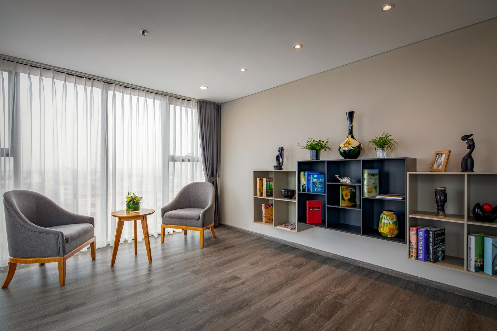 | Máy giặt |  | Máy sấy quần áo |  | Điều hòa |  | Sàn gỗ |  | Tủ lạnh |  | Chỗ để xe máy |  | Lò nướng |  | Ti vi |  | Sofa |  | Giường |  | Dụng cụ nấu ăn |  | Tủ quần áo |  | Ban công |  | Thang máy |  | Gần công viên |  | Gần siêu thị |  | Chiếu sáng tốt |  | Khu dân trí cao |  | Nhìn ra hồ |  | Khu vui chơi |  | Chỗ để ô tô |  | Bể bơi |  | Phòng tập |  | Phòng xông hơi/Massage |  | Nước sạch |
