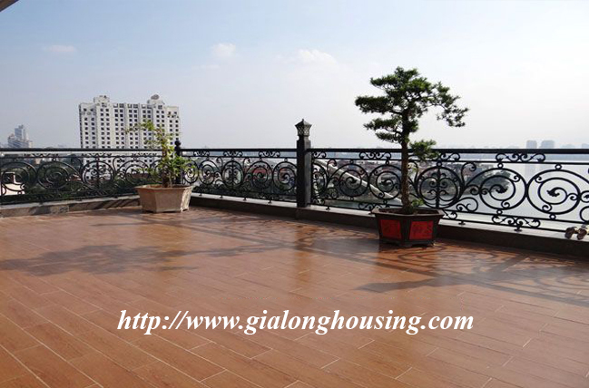 Cần cho thuê căn hộ cao cấp, tầng cao rộng rãi, view hồ Tây ở Xuân Diệu. Diện tích căn hộ là 350m2, chia làm 4 phòng ngủ, 3 phòng tắm, 1 phòng khách rộng rãi và sân rộng view toàn cảnh hồ Tây.Căn hộ có một phần nội thất thích hợp cho khách gia đình, Đại Sứ Quán các nước ở lâu dài và làm việc cũng như công tác.
