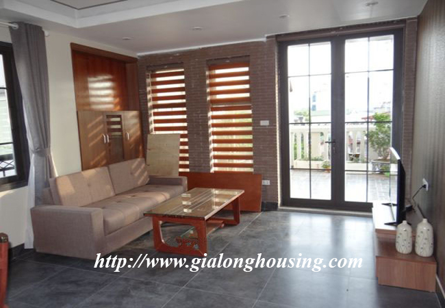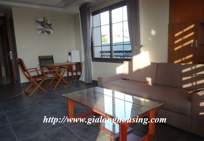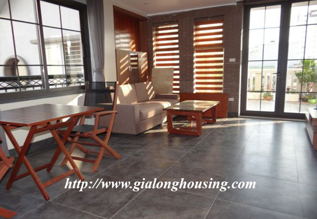 Căn hộ cho thuê nằm trên tầng 6 của tòa nhà mới được đưa vào sử dụng, rất gần với khách sạn Daewoo, trung tâm thương mại Lotte. Với diện tích: 90 m2, thiết kế 1 phòng ngủ, 1 phòng vệ sinh, phòng khách, bếp, và 1 khoảng sân vườn rộng dành riêng cho căn hộ. Nội thất trang bị đầy đủ, mới và hiện đại. Giá thuê đã bao gồm: internet, truyền hình cap, nước sinh hoạt, truyền hình Nhật NHK, dọn vệ sinh và giặt là, bảo vệ 24/ 24h.