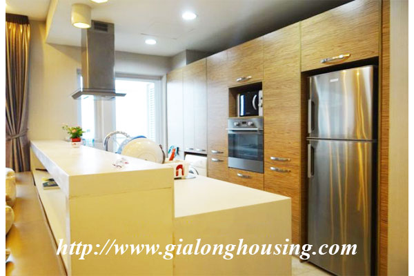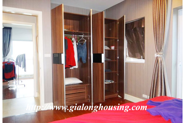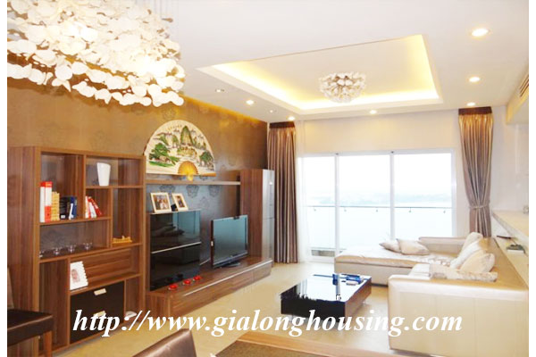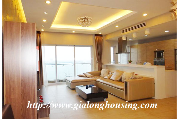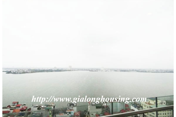 Căn hộ này nằm ở tầng cao tòa nhà với tầm nhìn phóng mắt ra Hồ Tây từ cả hai cửa sổ và ban công . Tổng diện tích căn hộ là 117 m vuông gồm 02 phòng ngủ 02 phòng tắm và 1 phòng khách với không gian mở.Căn hộ đã được trang bị đầy đủ nội thất rất đẹp,tiện nghi và sang trọng.