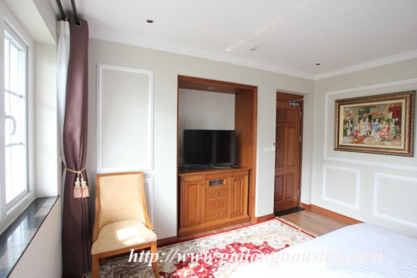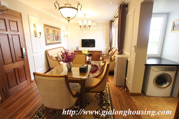 Cho thuê căn hộ dịch vụ mới hoàn thành ở phố Mai Hắc Đế.Căn hộ có diện tích 85m2,thiết kế 1 phòng ngủ,trang bị đầy đủ nội thất hiện đại theo phong cách Hoàng Gia,phù hợp cho người nước ngoài thuê để ở.Gía:1600 USD.