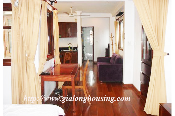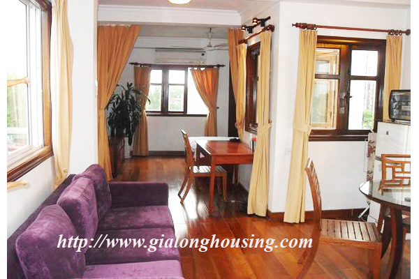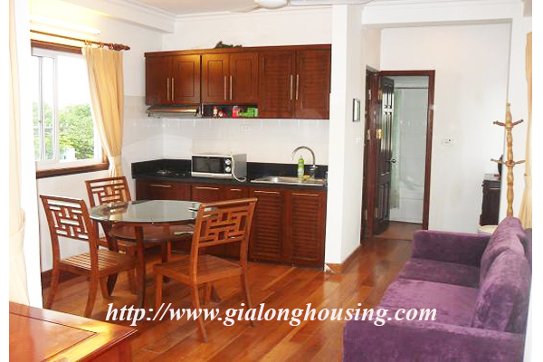 Cho thuê căn hộ dịch vụ ở Phố Đặng Dung, gần hồ Trúc Bạch, diện tích 50m2, 1 phòng ngủ, 1 phòng tắm, căn hộ đầy đủ nội thất, có bồn tắm nằm, đi bộ 2 phút ra hồ Trúc Bạch, căn hộ nằm ở trung tâm thành phố, an ninh rất tốt, khu vực dân trí cao.