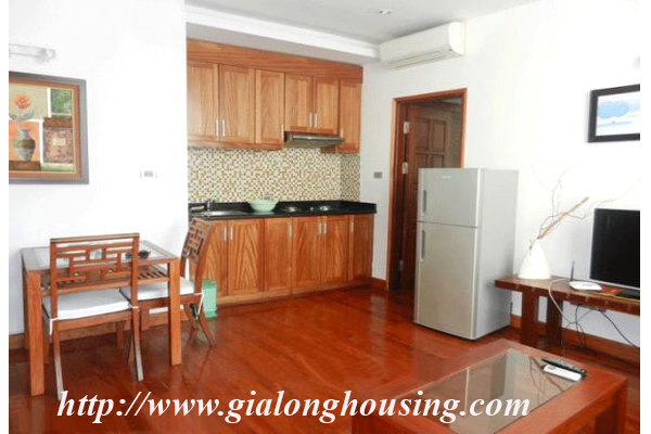 Căn hộ dịch vụ cho thuê ở Trúc Bạch, diện tích căn hộ 55m2, 1 phòng ngủ, 1 phòng tắm, căn hộ đầy đủ nội thất hiện đại, an ninh tốt, yên tĩnh, giao thông thuận tiện.