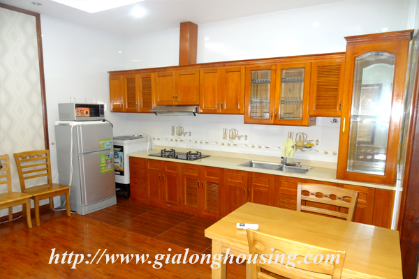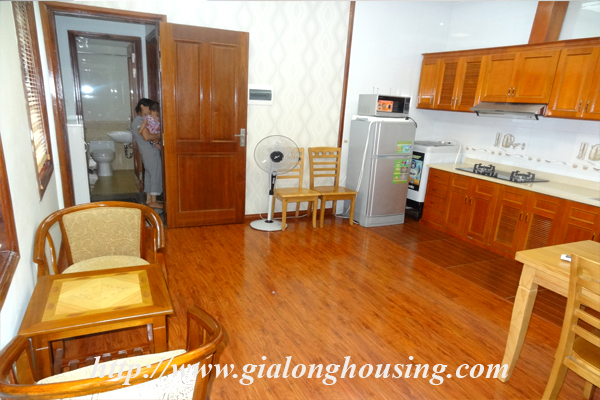 Căn hộ dịch vụ đầy đủ nội thất, cho thuê trên phố Vạn Bảo. Diện tích căn hộ: 50m2, thiết kế 1 phòng ngủ, 2 vệ sinh, nội thất được trang bị đầy đủ, căn hộ có sàn gỗ, có thang máy, ô tô đỗ trước cửa. Giá cho thuê: 450$/ Tháng. Bao gồm: net, cap, nước, dọn vệ sinh 2 lần/ tuần.