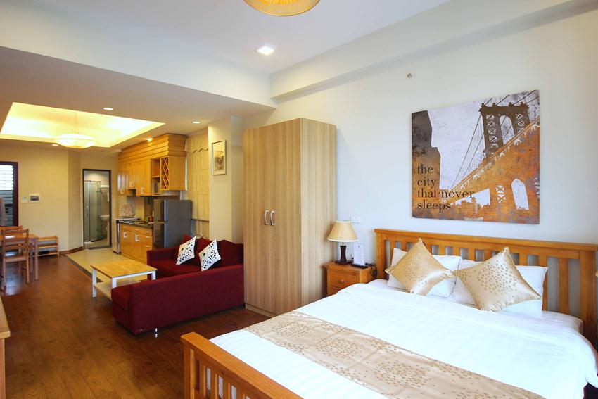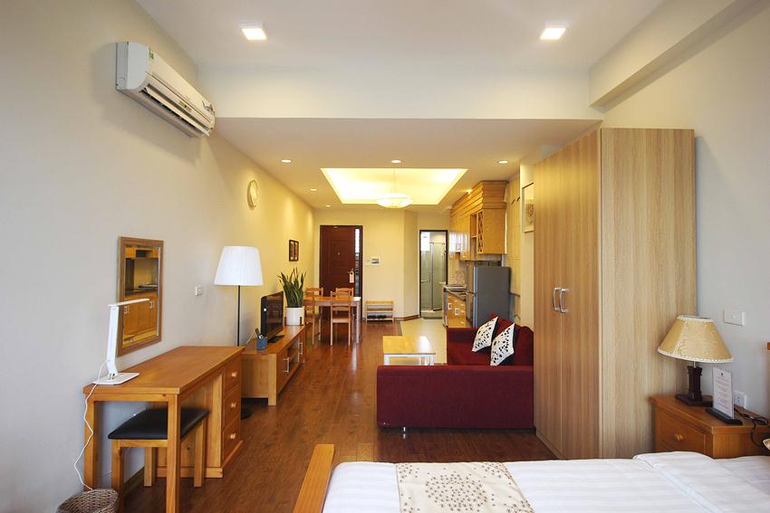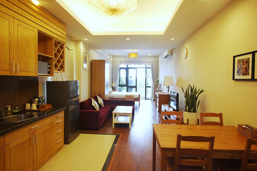 Cho thuê căn hộ dịch vụ loại Studio, view hồ Ba Mẫu. Căn hộ nằm trong tòa nhà dịch vụ hiện đại, với bảo vệ 24/ 24h, có thang máy. Phù hợp cho các chuyên gia người nước ngoài thuê để ở. Diện tích căn hộ: 60 m2, thiết kế 1 phòng ngủ, phòng khách, bếp, ban công.