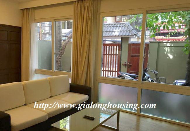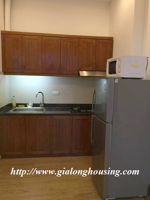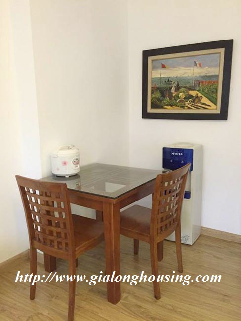 Căn hộ dịch vụ đầy đủ nội thất trên phố Linh Lang, quận Ba Đình cho thuê. Căn hộ có diện tích 55 m2, 1 phòng ngủ, 1 phòng vệ sinh, phòng bếp, sàn gỗ. Căn hộ được thiết kế với nhiều ánh sáng, thoáng và nằm gần TTTM Lotte, khách sạn Daewoo, các nhà hàng Nhật, siêu thị, rất phù hợp cho các chuyên gia, khách người nước ngoài thuê để ở. Giá thuê đã bao gồm: internet, truyền hình cap, nước sinh hoạt, dịch vụ dọn vệ sinh và giặt là 3 lần/ tuần, bảo vệ 24/ 24h.
