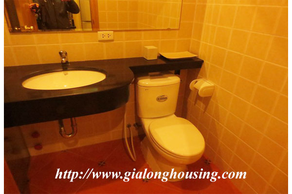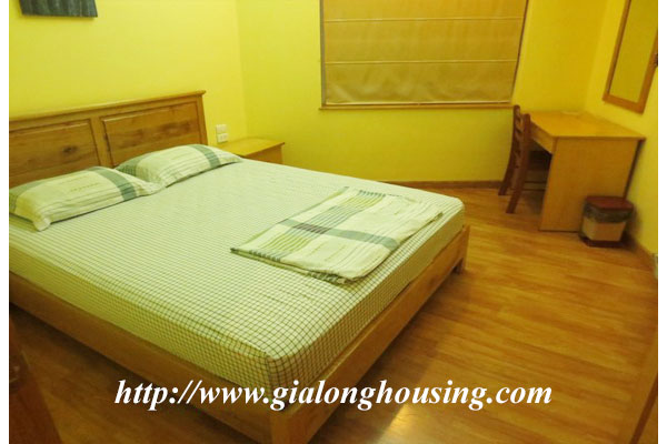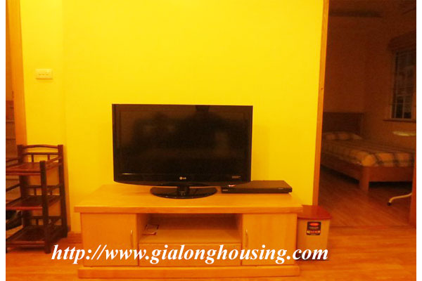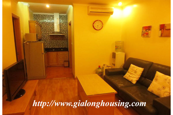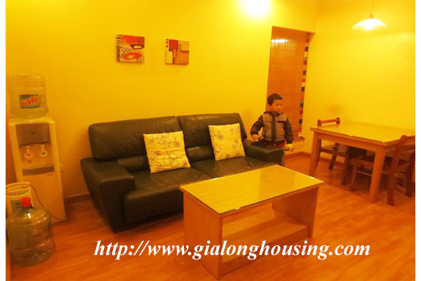 Cho thuê căn hộ dịch vụ, đầy đủ nội thất trên phố Nguyễn Thái Học. Diện tích 60 m2, 2 phòng ngủ, 1 WC, sàn gỗ. Tòa nhà có thang máy, bảo vệ 24/ 24h. Các dịch vụ miễn phí đi kèm gồm: net, cap, nước, dọn vệ sinh 2 lần/ tuần.