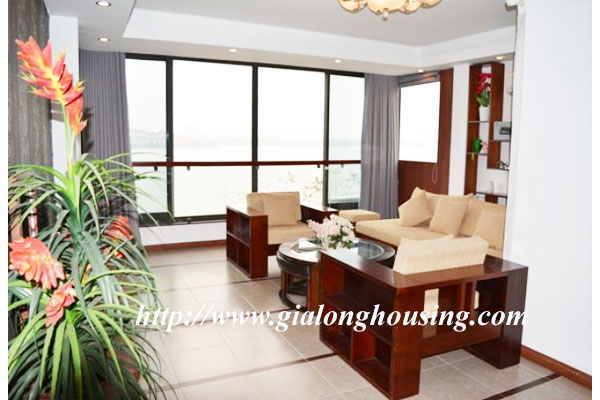 Cho thuê căn hộ dịch vụ view hồ Tây ở phố Nhật Chiêu.Diện tích căn hộ là 110m2 gồm 01 phòng ngủ,02 vệ sinh,01 phòng khách có ban công ngắm cảnh hồ Tây cũng như cảnh thành phố.Căn hộ đã trang trí đầy đủ nội thất và khách thuê chỉ việc tận hưởng cảm giác thoải mái trong căn hộ.