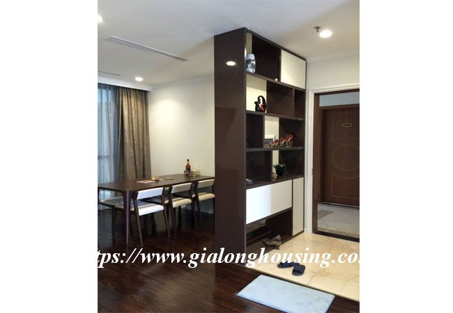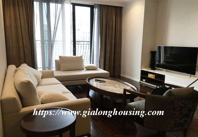 Căn hộ hiện đại nằm ở góc của tòa nhà R6. Là tòa nhà mới nhất trong khu đô thị của Royal City, tòa nhà này có thiết kế độc đáo với khu vườn trên bầu trời và các bức tường đá granit. Tổng diện tích 114 m2, bao gồm 03 phòng ngủ và 02 phòng tắm. Cả hai phòng ngủ đều có cửa sổ và ánh sáng tự nhiên. Toàn bộ phong cách mang lại cho bạn cảm giác gia đình do trang thiết bị hiện đại và hợp thời trang.