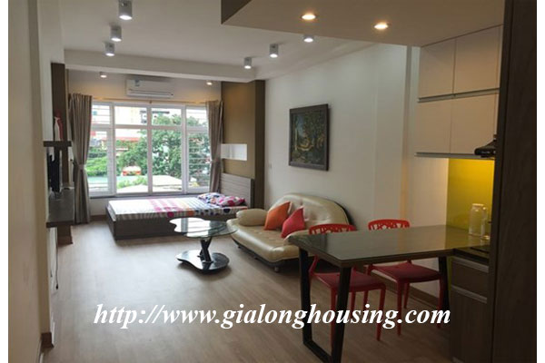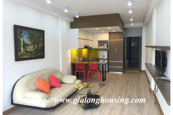 Đây là một căn hộ rất đẹp và sáng, nội thất mới nằm ở phố Đội Cấn, quận Ba Đình. Với vị trí trung tâm, có thể đi bộ đến TTTM Lotte, Đại sứ quán Nhật Bản. Diện tích căn hộ 40 m2, thiết kế 1 phòng ngủ, 1 WC, bếp khép kín. Giá thuê đã bao gồm truyền hình cáp, internet , dịch vụ dọn vệ sinh.