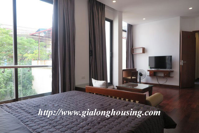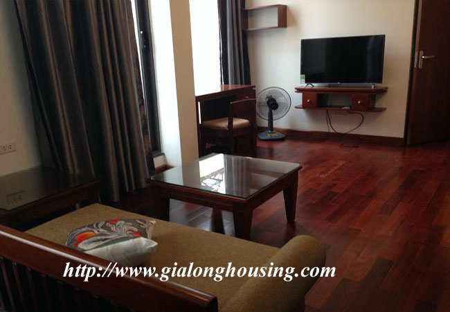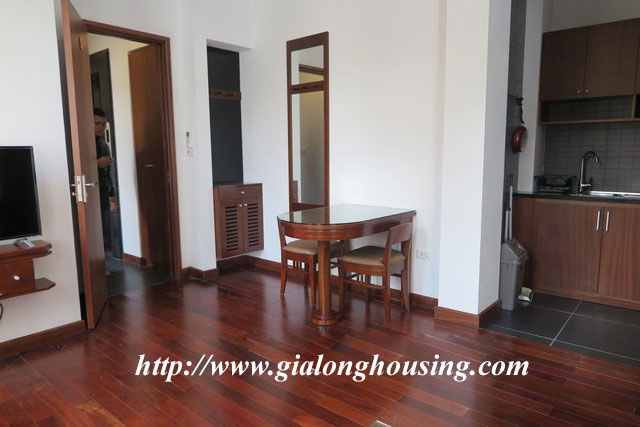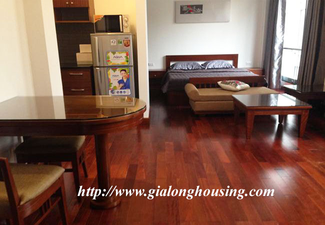 Cho thuê căn hộ studio trong tòa nhà mới được đưa vào sử dụng trên phố Đào Tấn, gần TTTM Lotte, khách sạn Daewoo. Căn hộ có diện tích: 45 m2, 1 phòng ngủ, phòng khách, bếp, 1 phòng vệ sinh. Căn hộ thoáng, nhiều ánh sáng, nội thất mới, hiện đại, sàn gỗ, tòa nhà có thang máy, bảo vệ 24/ 24h. Giá thuê đã bao gồm: internet, truyền hình cap, nước sinh hoạt và dọn vệ sinh.