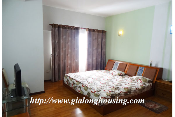 Đây là một căn hộ tầng rất cao với tầm nhìn tuyệt đẹp ra hồ và thành phố Hà Nội. Tổng diện tích lên đến 150 m2. Có 03 phòng ngủ và 02 phòng tắm. Các phòng của căn hộ đều sáng và có nội thất đẹp. Tất cả đồ nội thất chất lượng cao được lắp đặt đầy đủ của chủ nhà. Tòa nhà có thang máy, nhà hàng, bãi đỗ xe.