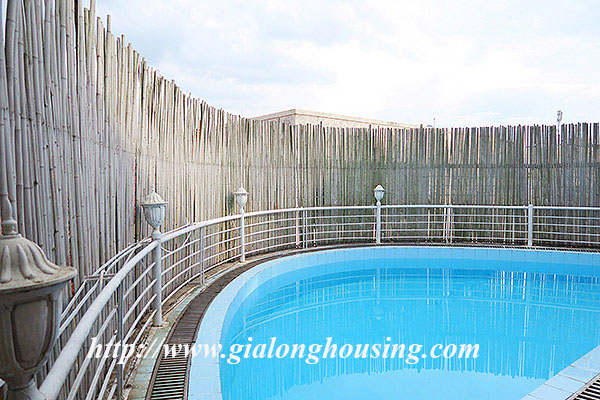 Diện tích nhà là 150m, DTXD là 100m2 x 04 tầng, gồm 05 phòng ngủ, 04 phòng tắm, 01 phòng khách và ban công ở mỗi tầng. Đặc biệt là ở tầng thượng có bể bơi, để quý khách tận hưởng cảm giác thư giả thoải mải ngay trong ngôi nhà mình ở. Nhà đã trang trí đầy đủ nội thất và khách thuê chỉ việc chuyển vào là ở được ngay.