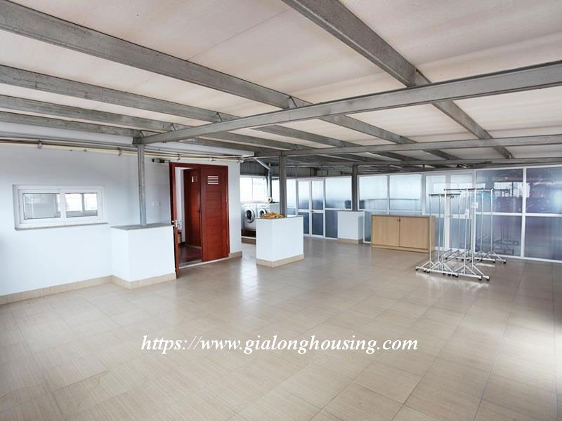 Cần cho thuê nhà nhiều phòng ngủ ở ngõ 11 Tô Ngọc Vân, phường Quảng An, quận Tây Hồ. Nhà có diện tích 110m2, xây dựng 6 tầng, có 6 phòng ngủ, 6 phòng tắm, phòng khách thông với bếp ở tầng 02, bể bơi và xe để ở tầng 01. Nhà mỗi tầng đều có ban công rộng và thoáng, có thể kê bàn uống nước, ngồi hóng gió. Nhà có 1 phòng sinh hoạt chung ở tầng 05 khá rộng, tầng 06 là phòng giặt, phơi đồ rộng rãi có mái che.
