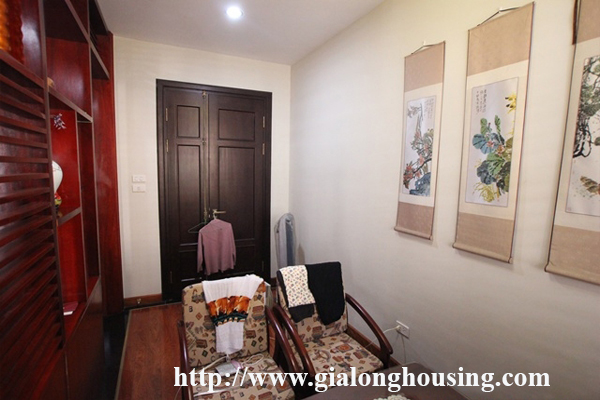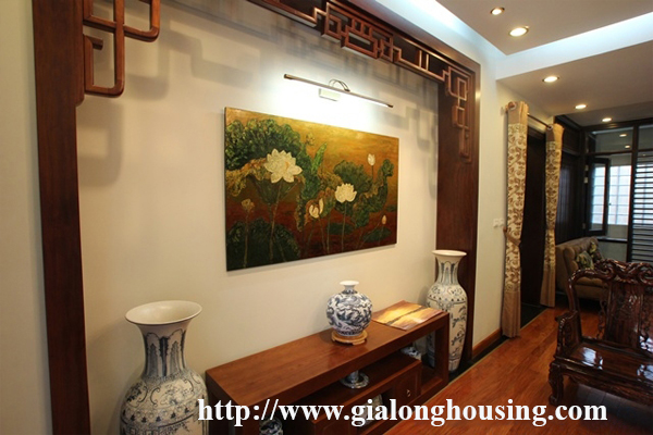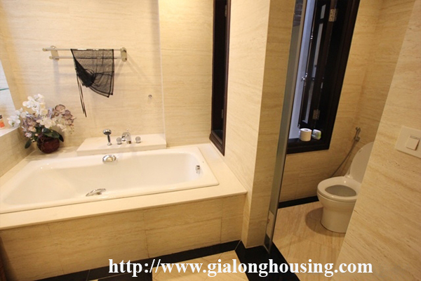 Nhà rộng và đẹp tại phố Tô Ngọc Vân, Tây Hồ, Hà Nội. Diện tích đất là 120 mét vuông, xây dựng là 3 tầng, được thiết kế với 5 phòng ngủ, 4 phòng tắm với bồn tắm, phòng khách và nhà bếp hiện đại. Không gian sống tươi sáng với sàn gỗ. Nội thất đầy đủ. Tiện nghi: điều hòa không khí, kết nối internet, kết nối điện thoại, truyền hình cáp