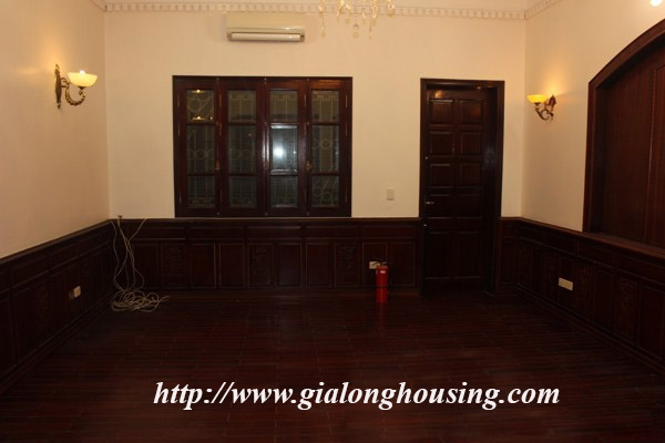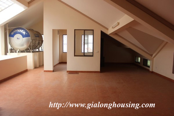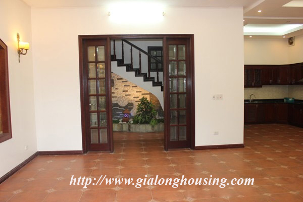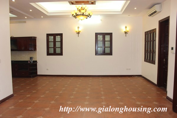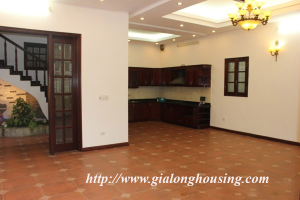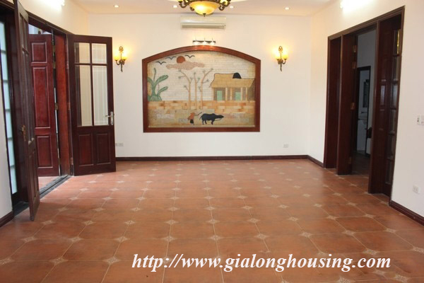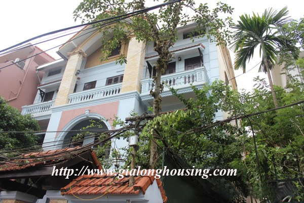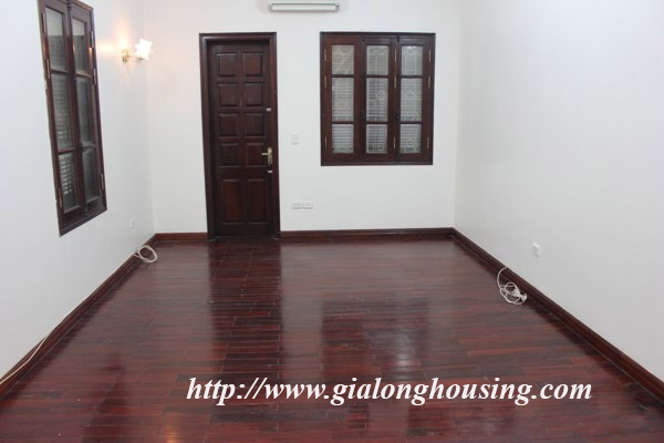 Nhà 5 phòng ngủ cho thuê tại Xóm CHùa, phố Đặng Thai Mai, quận Tây Hồ. Diện tích đất là 200 mét vuông với sân vườn rộng rãi, nhiều cây xanh, diện tích nhà là 100 mét vuông với 4 tầng. Nhà đã có 1 số đồ cơ bản như sàn gỗ, tủ bếp, thiết bị vệ sinh.