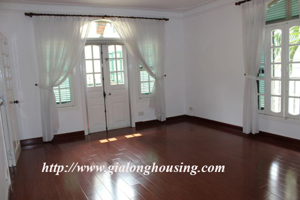 Một ngôi nhà rất đẹp có bể bơi và sân rộng cho thuê trên đường Đặng Thai Mai. Vị trí gần Hồ Tây, Fraser Suites, trung tâm mua sắm Syrena, phòng tập thể dục và nhà hàng. Tổng diện tích của ngôi nhà là 250 mét vuông với 05 phòng ngủ và 04 phòng tắm. Nhà được thiết kế theo phong cách phương Tây hiện đại. Nó không có đồ nội thất.