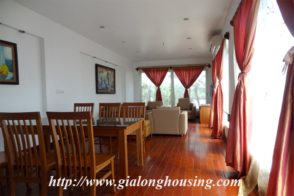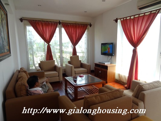 Một ngôi nhà đẹp cho thuê ở đường Đặng Thai Mai, Tây Hồ Hà Nội. Diện tích đất là 80 mét vuông, diện tích xây dựng là 60 mét vuông x 4 tầng. Có 3 phòng ngủ, 3 phòng tắm, phòng khách và nhà bếp. Thiết kế hiện đại, bố cục hài hoà. Trang bị và trang bị đầy đủ. Tiện nghi: điều hòa không khí, kết nối internet, kết nối điện thoại, truyền hình cáp ... Giá thuê: 1200 USD / tháng.