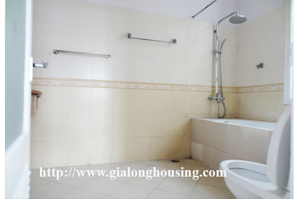 Nhà cần cho thuê ngay tại làng Nghi Tàm, quận Tây Hồ. Tổng diện tích đất là 200 met vuông với sân vườn và một bể bơi nhỏ trước nhà. Thiết kế tổng thể rất hài hòa , căn nhà không có nội thất nên rất tiện cho bạn tự lắp đặt, trạng bị nội thất theo ý thích. Diện tích xây dụng là 100 met vuông x 4 tầng, có 04 phòng ngủ và 04 vệ sinh.