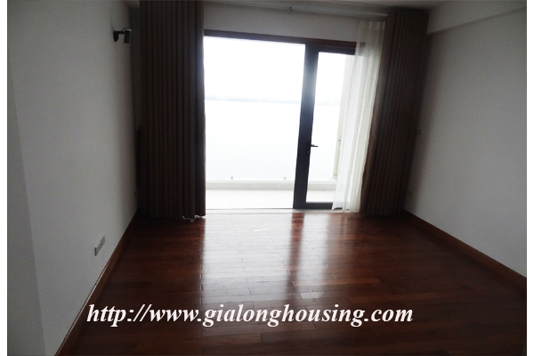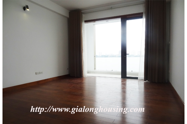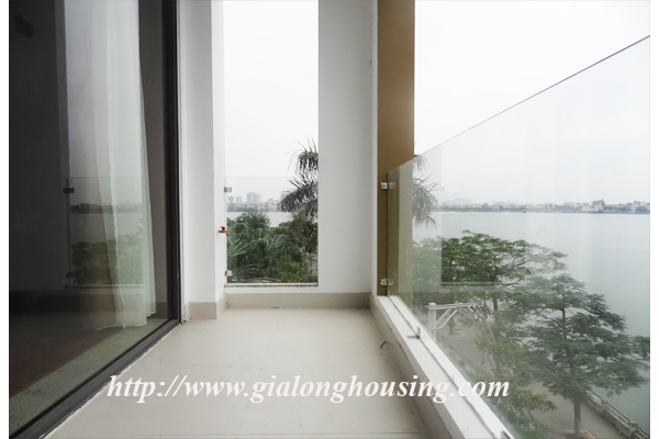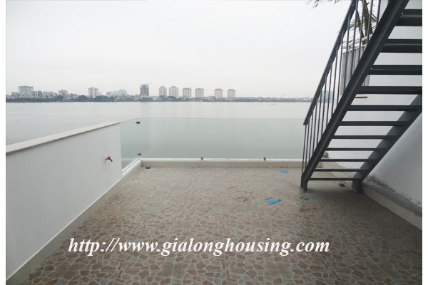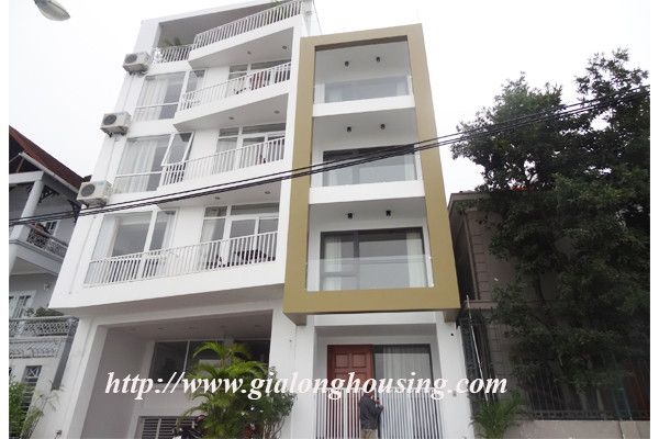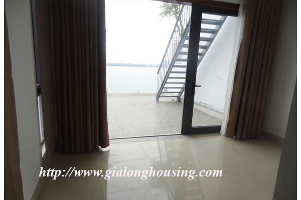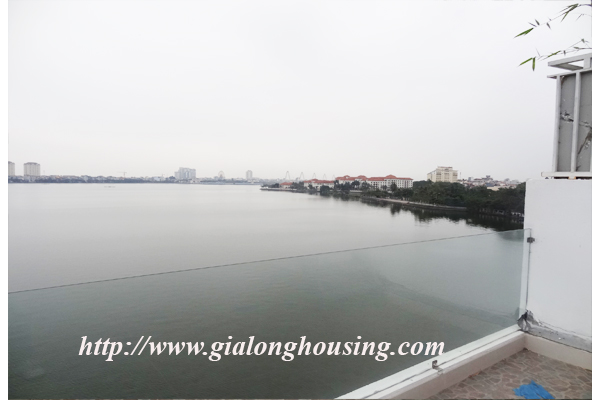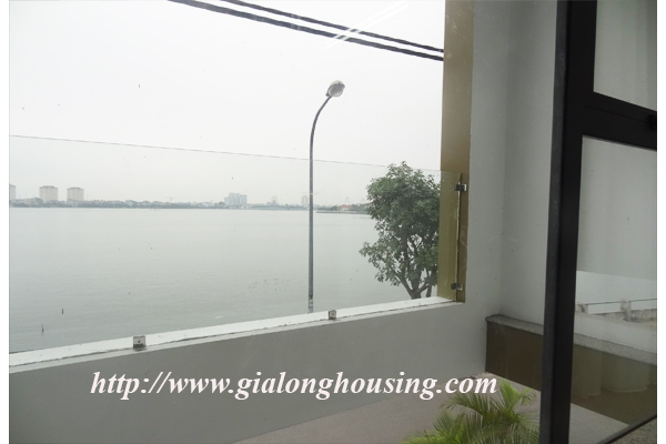 Nhà mới xây cho thuê tại phố Đặng Thai Mai, quận Tây Hồ, ngay sát hồ Tây. Từ mọi cửa sổ và ban công có thể nhìn được toàn bộ phòng cảnh hồ Tây. Diện tích đất là 80 mét vuông, diện tích xây dựng là 400 mét vuông. Được thiết kế 07 phòng ngủ và 0 vê sịnh, sàn gỗ rèm cửa điều hòa đầy đủ. Có thể vào ở ngay