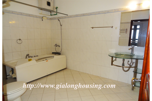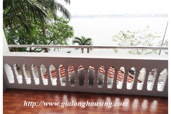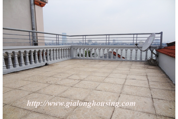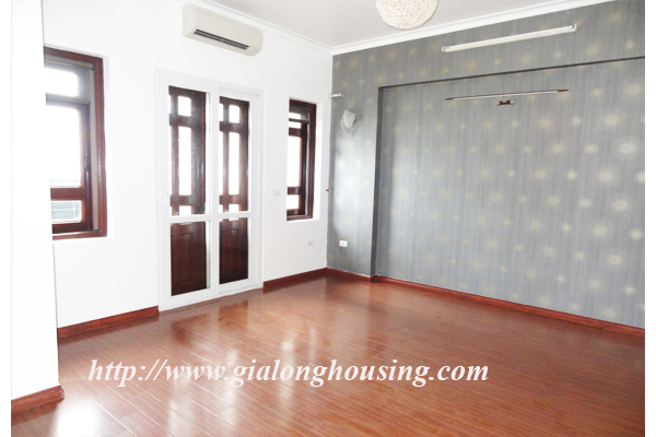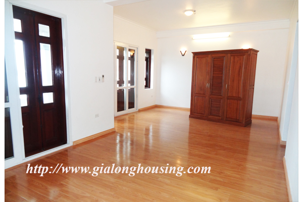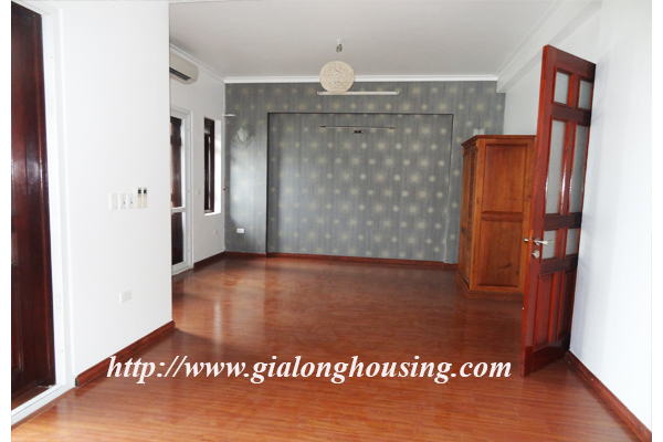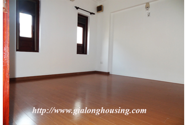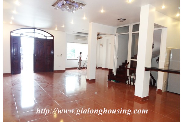 Nhà không có đồ đạc cho thuê ở đường Đặng Thai Mai, quận Tây Hồ. Ngôi nhà nằm ngay bên hồ Tây. Biệt thự có 4 tầng có view rất đẹp, không khí trong lành và rất tươi sáng. Ngôi nhà được thiết kế hiện đại, một nhà bếp hiện đại, một phòng khách lớn, ban công. Nó có năm phòng ngủ, và năm phòng tắm, một sân rộng và đẹp. Biệt thự này có sẵn wifi, truyền hình cáp. Nó rất thích hợp cho một gia đình.
