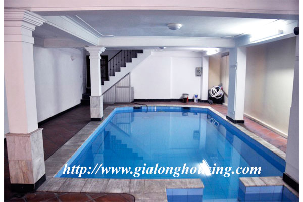 Nhà riêng 04 tầng đẹp có bể bơi ở Tô Ngọc Vân,Tây Hồ.Diện tích nhà là 170m2,DTXD là 100m2 x 04 tầng,gồm 03 phòng ngủ,03 phòng tắm,02 ban công,01 phòng khách.Nhà đã trang trí đầy đủ nội thất đẹp và sang trọng.Với bể bơi trong nhà quý khách sẽ có cảm giác thoải mái khi thả mình trong nước.